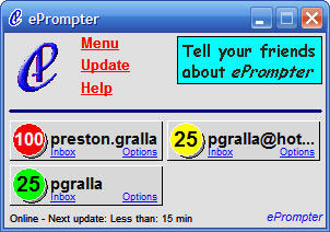 Lưu ý rằng chương trình này có thể làm việc tốt trên Windows XP, nhưng không thể sử dụng nó trên Windows Vista. Thêm vào đó nếu bạn có một địa chỉ Hotmail, phải chọn tùy chọn LiveMail trong ePrompter để khi bạn thiết lập tài khoản thì nó không làm việc đúng cách với tư cách Hotmail nhưng lại làm việc tốt với tư cách LiveMail.