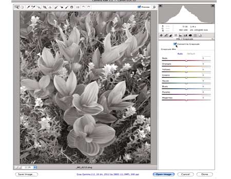 Chương trình được sử dụng là Photoshop CS và plug-in Adobe Camera RAW (ACR). Nếu bạn dùng Photoshop Lightroom, cách sử dụng cũng tương tự vì chúng cùng một hệ thống. Đáng tiếc với Photoshop Elements, phiên bản ACR của nó không chuyển về đen trắng được.