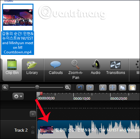 Người dùng cũng tiến hành kéo video 2 này xuống khu vực Track bên dưới. Nếu bạn để video 2 ở dưới video 1 nghĩa là màn hình video 2 sẽ ở dưới video 1. Track video nào ở trên đầu thì nội dung sẽ được ưu tiên hơn.