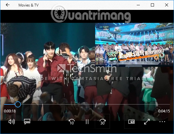 Cuối cùng bạn mở phần mềm xem nhạc trên máy tính để phát video. Như trong hình 2 video đã được lồng ghép với nhau, theo kiểu màn hình trên và màn hình dưới mà tôi đã thiết lập lúc trước. Tuy nhiên, với bản Camtasia Studio miễn phí video sẽ gắn logo ở chính giữa.