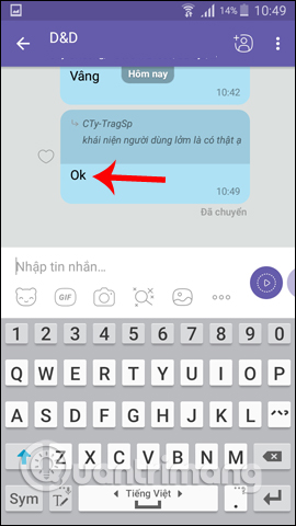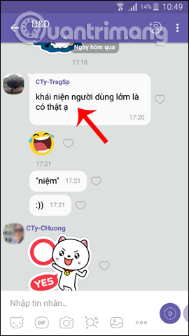 Như vậy, khi các thành viên đọc được tin nhắn trong nhóm chat Viber sẽ biết được bạn trả lời tin nhắn của ai và trả lời cho vấn đề nào trong cuộc hội thoại.