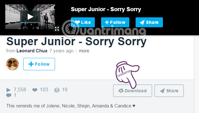 Trong giao diện phát video trên Vimeo, bạn kéo xuống dưới phần thông tin của video sẽ thấy nút Download. Click vào đó để tải video Vimeo.