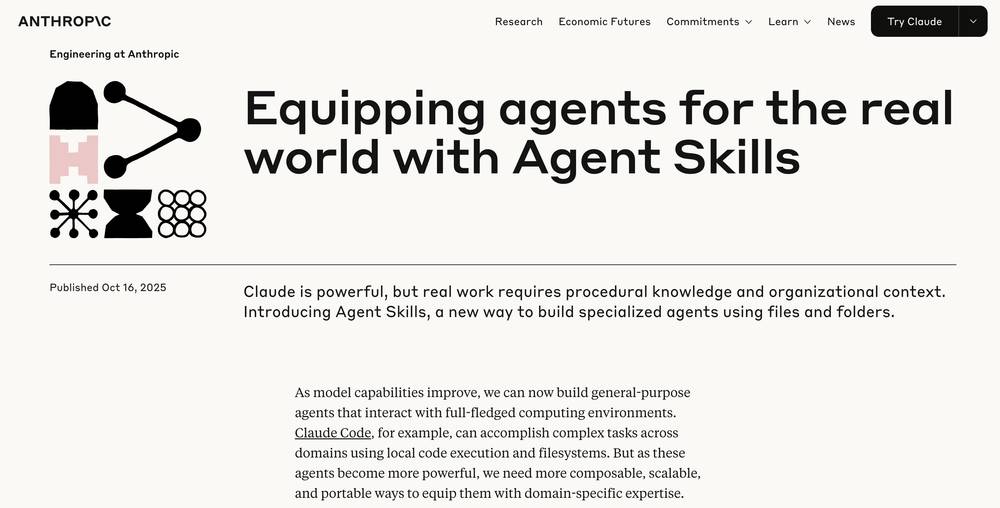 Anthropic đã ra mắt Agent Skills và thông báo rằng chúng sẽ có sẵn trên tất cả các nền tảng (ví dụ: trên trình duyệt, Projects, ứng dụng desktop và Claude Code).