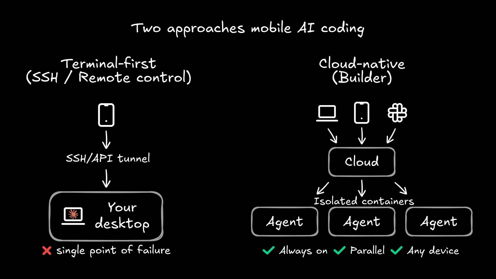 Nhưng câu trả lời cho câu hỏi "làm thế nào để sử dụng các AI agent khi đang di chuyển?" không phải là thu nhỏ terminal của bạn, mà là phải suy nghĩ lại hoàn toàn về nơi agent đó hoạt động.