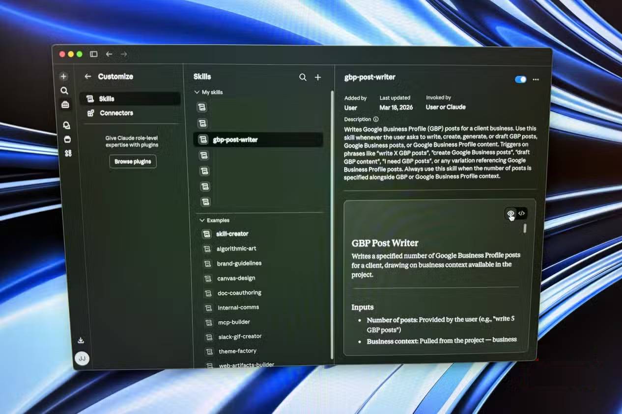 Một người đã viết bài đăng trên Google Business Profile và nội dung mạng xã hội cho một khách hàng doanh nghiệp nhỏ địa phương trong 5 năm. Sau đó, người này nhận một vị trí toàn thời gian ở nơi khác, bắt đầu khám phá các tính năng mới hơn của Claude và xây dựng một quy trình làm việc hiệu quả đến mức khách hàng yêu cầu người này chuyển hẳn sang công cụ này thay thế. Quy trình làm việc cũ giờ không phải là "được viết bởi AI", mà là được hỗ trợ bởi AI.
