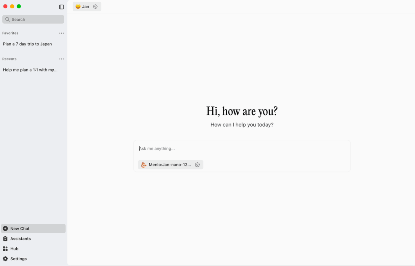 Jan.ai là một trợ lý ảo mã nguồn mở dành cho desktop, mang đến trải nghiệm trò chuyện tương tự ChatGPT cho macOS, Windows và Linux, với chế độ sử dụng cục bộ làm mặc định. Nó chạy trên thiết bị khi bạn muốn, trong khi lịch sử cuộc trò chuyện và dữ liệu sử dụng được lưu trữ cục bộ và không rời khỏi máy tính của bạn.