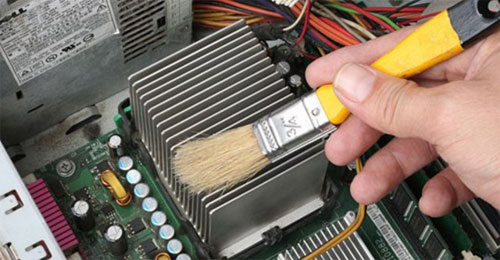 Dùng cọ để quét hay dụng cụ thổi khí nén để làm sạch bụi bên trong máy tính.
