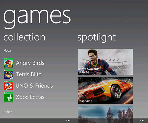 Mặc dù Android có nhiều game hơn, Nhưng Microsoft đã rất cố gắng để đem Asphalt 8, Jetpack Joyride, Guns và Fifa 14 có thể chạy mượt ngay cả trên các thiết bị Lumia giá rẻ. Bên cạnh đó với tầm ảnh hưởng của mình, Microsoft cũng đang cố gắng thuyết phục các hãng sản xuất game, ứng dụng cho ra mắt phiên bản Windows Phone đồng thời với Android. 1 ví dụ điển hình là Modern Combat 5 cho WP vừa ra mắt đồng thời với Android, iOS.