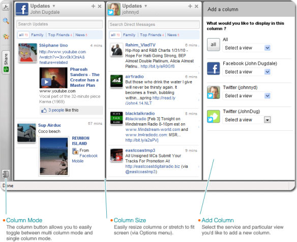 Yoono có thể là một tiện ích bạn rất cần, nó sẽ giúp bạn dễ dàng sử dụng Firefox sidebar hơn và hỗ trợ cho cả Twitter, Facebook, LinkedIn, Flickr... Cập nhật tình trạng và xem những gì bạn bè chia sẻ từ bất kỳ tài khoản được kết nối thông qua thanh chia sẻ Yoono. Ngoài ra, nó cung cấp việc truy cập vào hồ sơ của bạn rất nhanh chóng chỉ bằng một cú nhấp chuột.