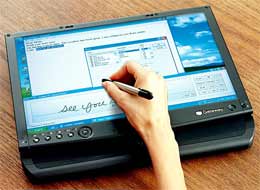 Màn hình của máy tính xách tay notebook, được thiết kế để có thể quay ngược lại thành một máy tính bảng (tablet PC), sẽ là hình ảnh phổ biến trong tương lai gần khi chi phí đầu tư và sản xuất giảm xuống.