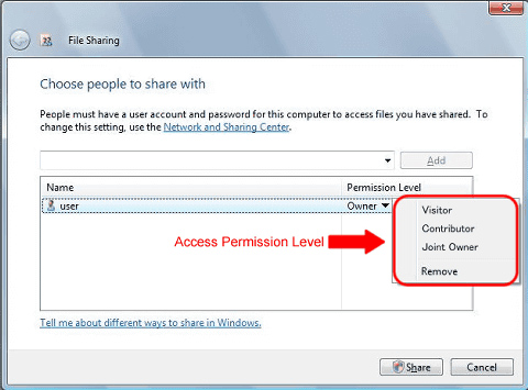 Hình 2: Các cấp độ cấp phép truy cập file chia sẻ.