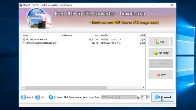 Hầu hết các chương trình của Boxoft là các công cụ cao cấp được thiết kế để giúp thực hiện các tác vụ văn phòng hàng ngày dễ dàng hơn, nhưng PDF to JPG Converter hoàn toàn miễn phí. Ngoài việc chuyển đổi hàng loạt PDF sang định dạng JPG, Boxoft PDF to JPG converter còn có thể tự động chuyển đổi tài liệu được lưu thành thư mục trên máy chủ. Ngoài ra, nó có một giao diện dòng lệnh cho người dùng nâng cao.