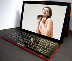 Ngoài ra bàn phím trên mẫu thử nghiệm cũng được thay thế bằng kiểu bàn phím cảm ứng – thêm một yếu tố giúp giảm thiểu đáng kể kích thước của laptop.