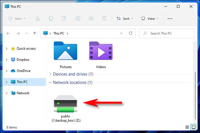 Windows 11 sẽ kết nối với ổ đĩa và ánh xạ nó tới ký tự ổ đĩa mà bạn đã chọn. Nếu mở File Explorer và nhìn vào phần “This PC”, bạn sẽ thấy ổ đĩa đã ánh xạ được liệt kê trong mục “Network Locations”.