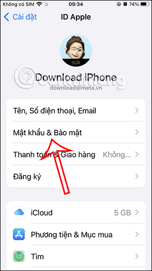 Trong trường hợp người dùng muốn xóa khóa bảo mật mà mình đã thiết lập, chúng ta cũng nhấn vào Cài đặt, chọn tài khoản Apple của bạn rồi chọn Mật khẩu & Bảo mật.