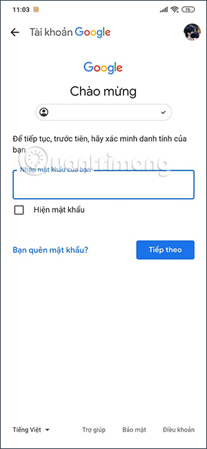 Cuối cùng bạn sẽ nhập mật khẩu tài khoản Google để kích hoạt tính năng này.