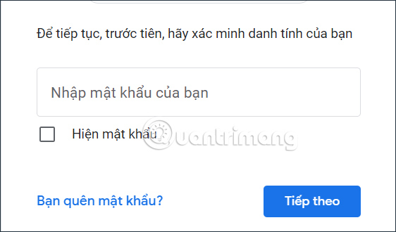 Google yêu cầu bạn nhập mật khẩu tài khoản để xác nhận là được.