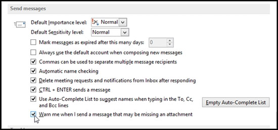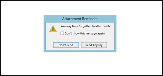 Outlook 2013 có một tính năng nhỏ rất hữu ích cho người dùng thường xuyên dùng email để trao đổi các tài liệu, đó là tính năng nhắc nhở đính kèm tập tin khi người dùng vừa nhấn nút "Send" để tiến hành gửi email.