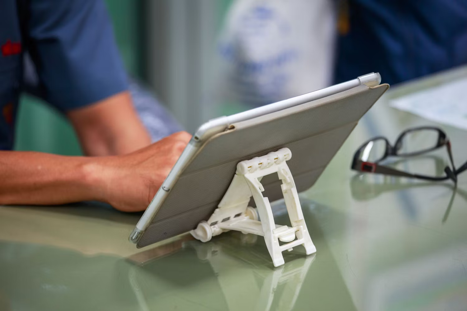 Một giải pháp thay thế là sử dụng giá đỡ máy tính bảng. Tùy chọn này có thể phù hợp với hầu hết mọi máy tính bảng trên thị trường và có nhiều màu sắc khác nhau. Bạn có thể đặt máy tính bảng theo hướng ngang. Ngoài ra còn có vị trí thuận tiện để đặt dây sạc.