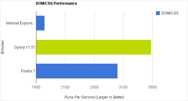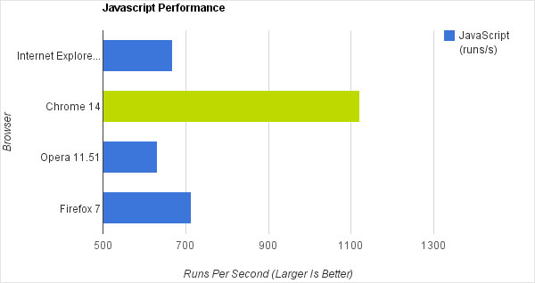 Thử nghiệm này chỉ tập trung vào hiệu suất và Opera 11.51 được đánh giá 82%, Firefox 7 là 73%, IE9 là 47,5% và Chrome 14 là 43%. Tuy nhiên, người sử dụng có thể còn quan tâm đến nhiều tiêu chí khác như tốc độ, ứng dụng tích hợp (add-on, extension, plugin), khả năng tùy biến...