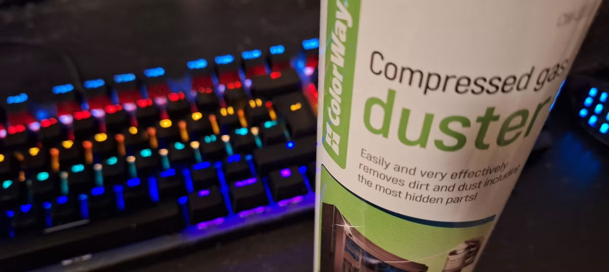 Sau khi dùng cọ sơn xong, hãy dùng đến bình xịt khí nén. Bình xịt này rất hữu ích để làm sạch những chỗ còn sót lại, đồng thời cũng giúp loại bỏ bụi bẩn xung quanh các switch bàn phím.