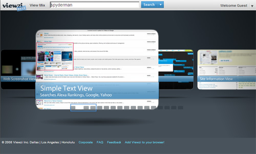 Công cụ tìm kiếm đầu tiên được giới phân tích đánh giá khá cao là Viewzi. Không chỉ có giao diện đồ họa khá bắt mắt và không giống với ngay cả Google, Viewzi là đại diện cho công cụ tìm kiếm với những ứng dụng 3D trong tương lai.