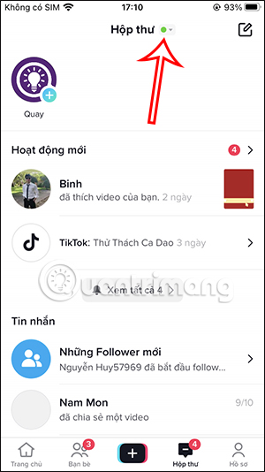 1. Bật tắt trạng thái hoạt động TikTok tại Hộp thư