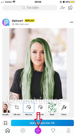 Sau đó khởi động PicsArt lên và trong giao diện chính bạn hãy chọn dấu cộng như ở dưới hình và thêm ảnh nền viền đen vừa tải về ở trên.