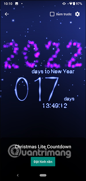Hoặc nếu thích thì bạn cũng có thể chuyển sang màn hình động đếm ngược năm mới 2022 cho màn hình Android, cũng có ngay trên ứng dụng Christmas Countdown with Carols.