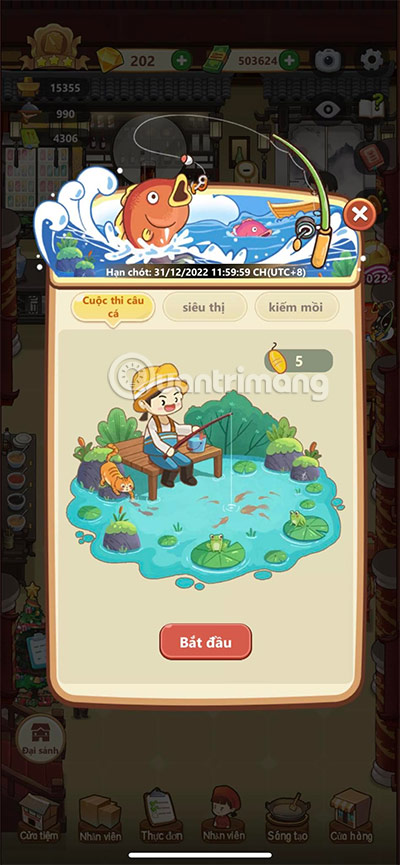 Chuyển sang Cuộc Thi Câu Cá và bắt đầu câu thôi.