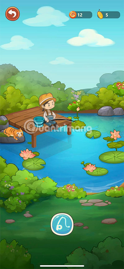 Để bắt đầu câu cá, bạn hãy thả lưỡi câu bằng cách chọn biểu tượng cần câu màu xanh như ở dưới hình.