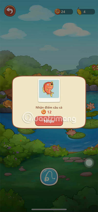 Sau đó, công việc bạn cần làm là để cá cắn câu và giựt mạnh cần câu lên để nhận thưởng bằng cách chọn biểu tượng con cá màu đỏ.