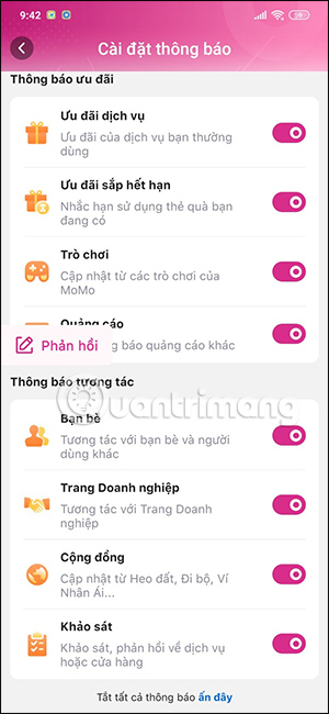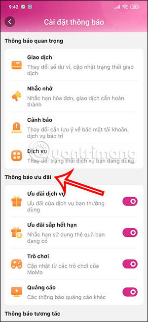 Hướng dẫn chặn thông báo quảng cáo trên MoMo