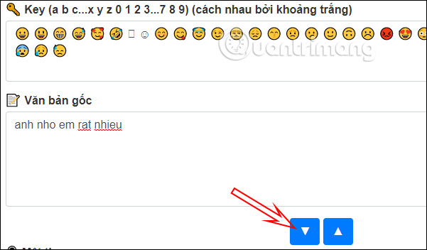 Tại giao diện này phần Văn bản gốc bạn nhập nội dung gốc không dấu muốn chuyển thành dạng icon. Sau đó bạn nhấn vào biểu tượng mũi tên xuống để dịch xuôi văn bản thành dạng icon.