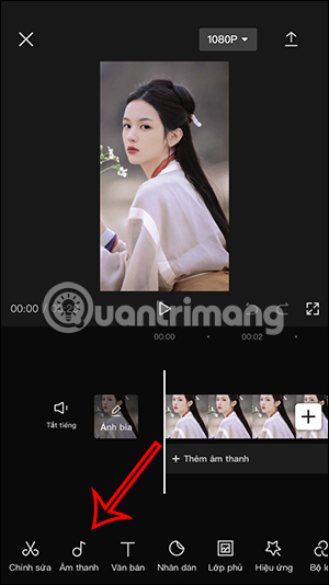 Quay trở lại ứng dụng Capcut rồi chọn video muốn chỉnh sửa. Tại giao diện chỉnh sửa video bạn nhấn chọn vào mục Âm thanh ở phía bên dưới màn hình.