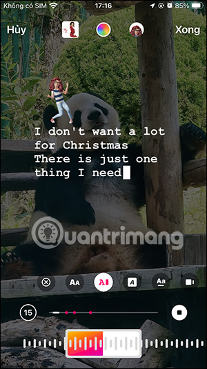 Nếu không thích hiển thị sticker nhảy múa trong Story Instagram nữa thì bạn nhấn lại vào biểu tượng avatar bên trên là được. Bây giờ chúng ta có thể kết hợp hiển thị lời nhạc trong Story Instagram để tăng thêm sự sinh động.