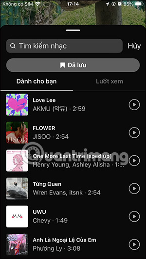 Tiếp đến trong giao diện chỉnh sửa đăng Story Instagram, bạn nhấn vào biểu tượng nhạc để chèn vào nội dung. Hiển thị giao diện thư viện nhạc để chúng ta tìm kiếm bài hát chèn vào Story Instagram.
