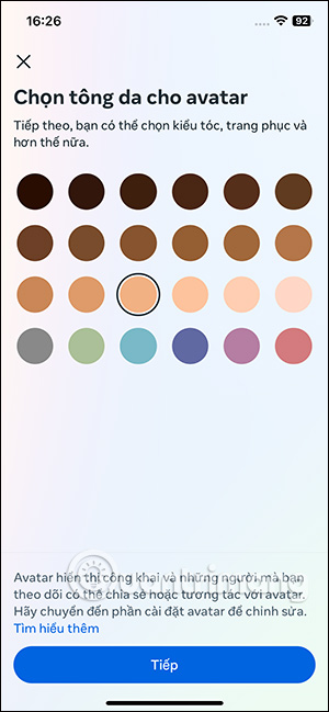 Lúc này trên màn hình hiển thị tùy chọn Tạo avatar nếu bạn chưa tạo avatar Instagram cá nhân. Tại đây người dùng thực hiện tạo avatar theo lựa chọn cá nhân với giao diện hiển thị trên màn hình.