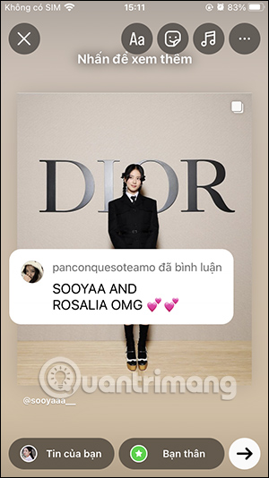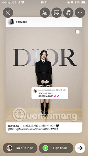 Chia sẻ bình luận lên Story từ Instagram người khác