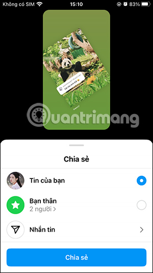 Trong giao diện tùy chỉnh bạn cũng thay đổi lại màu khung tin nhắn nếu muốn, giao diện hiển thị bài đăng. Cuối cùng bạn cũng đăng lên Story như bình thường.