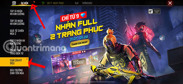 Bước 1: Ở giao diện chính bạn chọn event, vào phần Sự Kiện > Cán Cân Kỳ Diệu > Tham Gia Ngay.