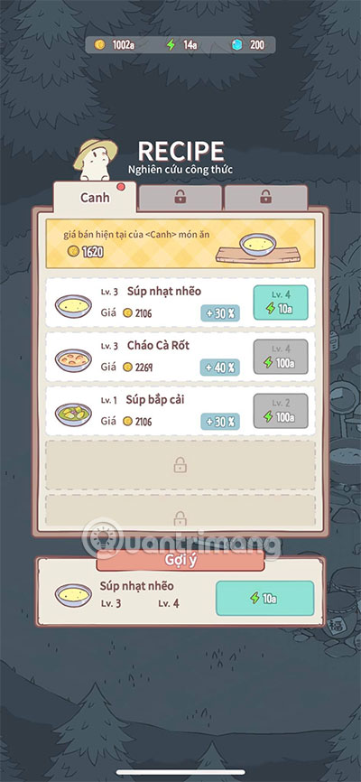 Đây cũng là một cách mà bạn nâng giá món ăn lên mà không cần phải có cơ sở nấu ăn mới. Một số cơ sở nghỉ ngơi sẽ cung cấp cho bạn điểm công thức. Nhấn vào biểu tượng Cái Búa ở góc dưới bên phải màn hình > chọn Nghỉ Ngơi và sau đó đặt một cơ sở nghỉ ngơi mới cho mèo.