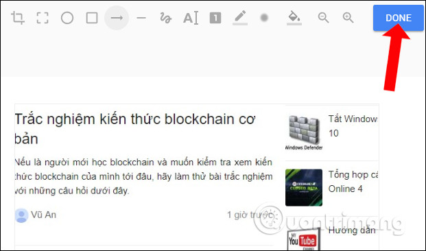 Tại giao diện chỉnh sửa bạn sẽ thấy các công cụ chỉnh ảnh xuất hiện phía trên màn hình. Có thể chèn văn bản, cắt hình, vẽ vào hình, làm mờ,… Chỉnh sửa xong nhấn nút Done bên trên để lưu lại thay đổi.