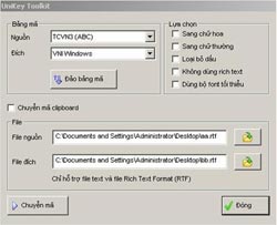 Chương trình Unikey có thể dùng để chuyển mã giữa rất nhiều định dạng mã văn bản khác nhau. Hiện phiên bản mới nhất là Unikey 4.0, bạn có thể tải ở trang web unikey.org hoặc tìm mua ở các cửa hàng phần mềm tin học.