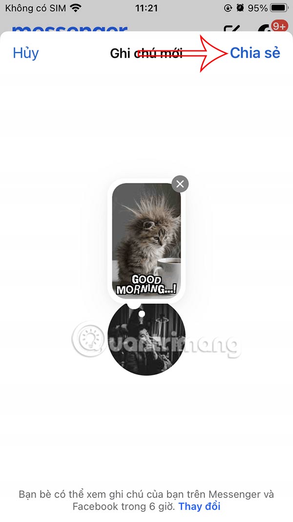 Cuối cùng bạn nhấn nút Chia sẻ để đăng ghi chú lên tài khoản Messenger của mình là được. Ảnh động sẽ hiển thị trong ghi chú trên Messenger và người khác theo dõi bạn sẽ nhìn thấy ảnh động này.