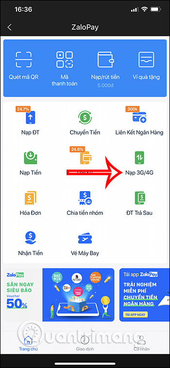 Hướng dẫn đăng ký data 3G/4G trên ZaloPay