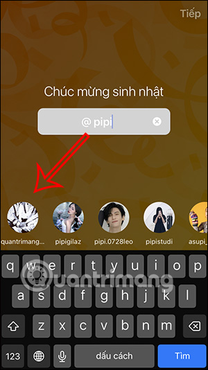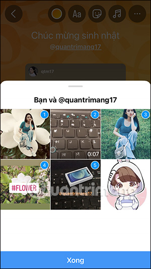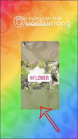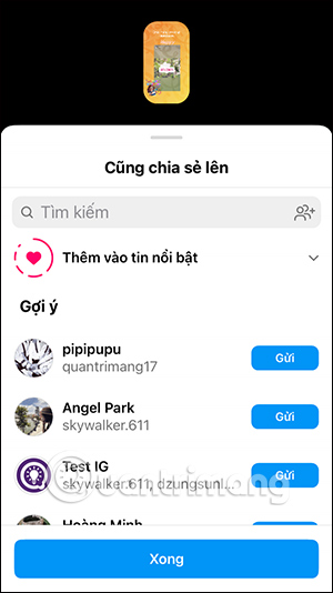 Chọn thiệp muốn đăng lên Instagram Story, sau đó bạn nhập tên tài khoản Instagram muốn gửi thiệp. Lúc này hiển thị giao diện bài đăng Story của 2 người.