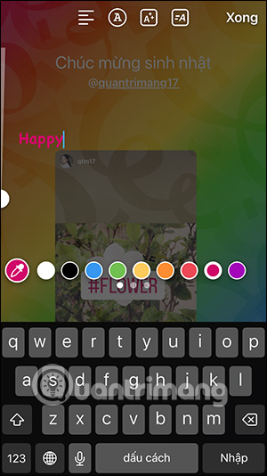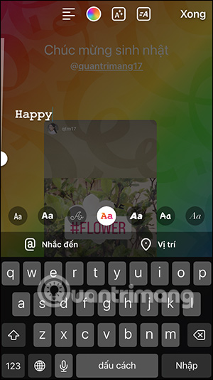 Tiếp tục chỉnh sửa Story như bình thường. Bạn nhấn vào Aa bên trên để viết chữ, chọn font chữ, màu sắc cho chữ.