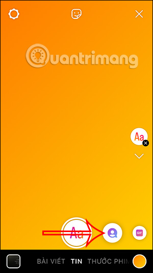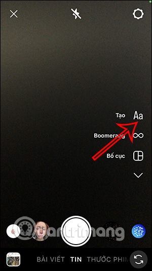 Tại giao diện trên ứng dụng Instagram, người dùng nhấn vào biểu tượng dấu cộng ở bên dưới. Sau đó chuyển sang giao diện Story trên ứng dụng, bạn sẽ nhấn vào biểu tượng Aa ở cạnh phải giao diện như hình.
