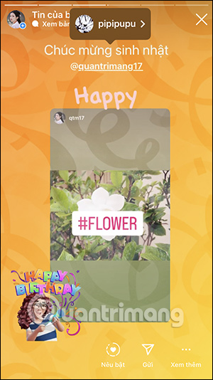 Sau khi đã chỉnh sửa xong bạn đăng thiệp lên Instagram Story như bình thường. Và chúng ta sẽ nhìn thấy thiệp đăng lên Story như hình. Đối phương cũng sẽ nhận được thông báo và hiển thị trên Story của bạn.